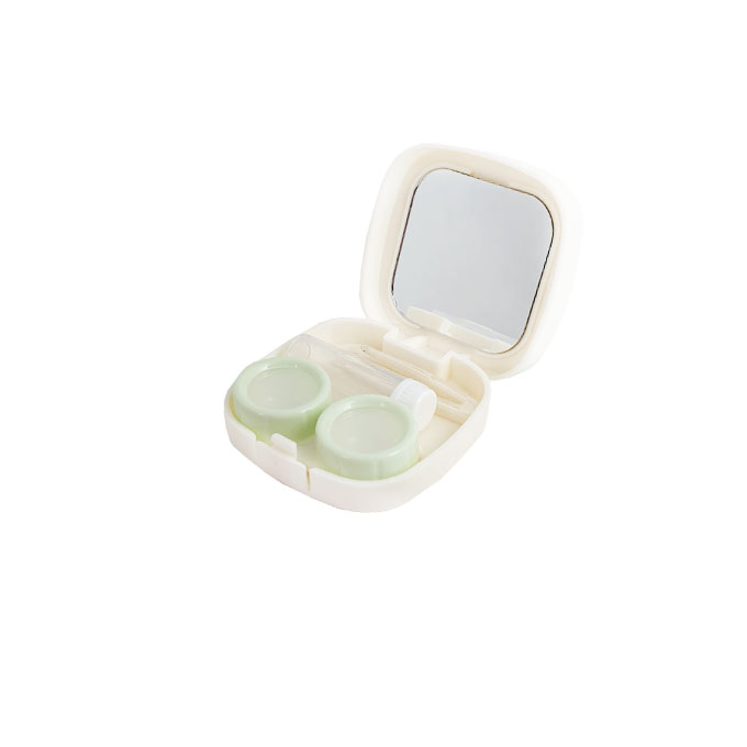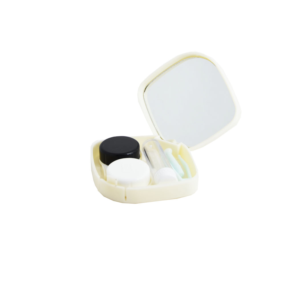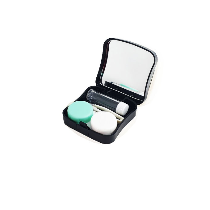 ლინზის შესანახი კონტეინერი დამხმარე ხელსაწყოებით.